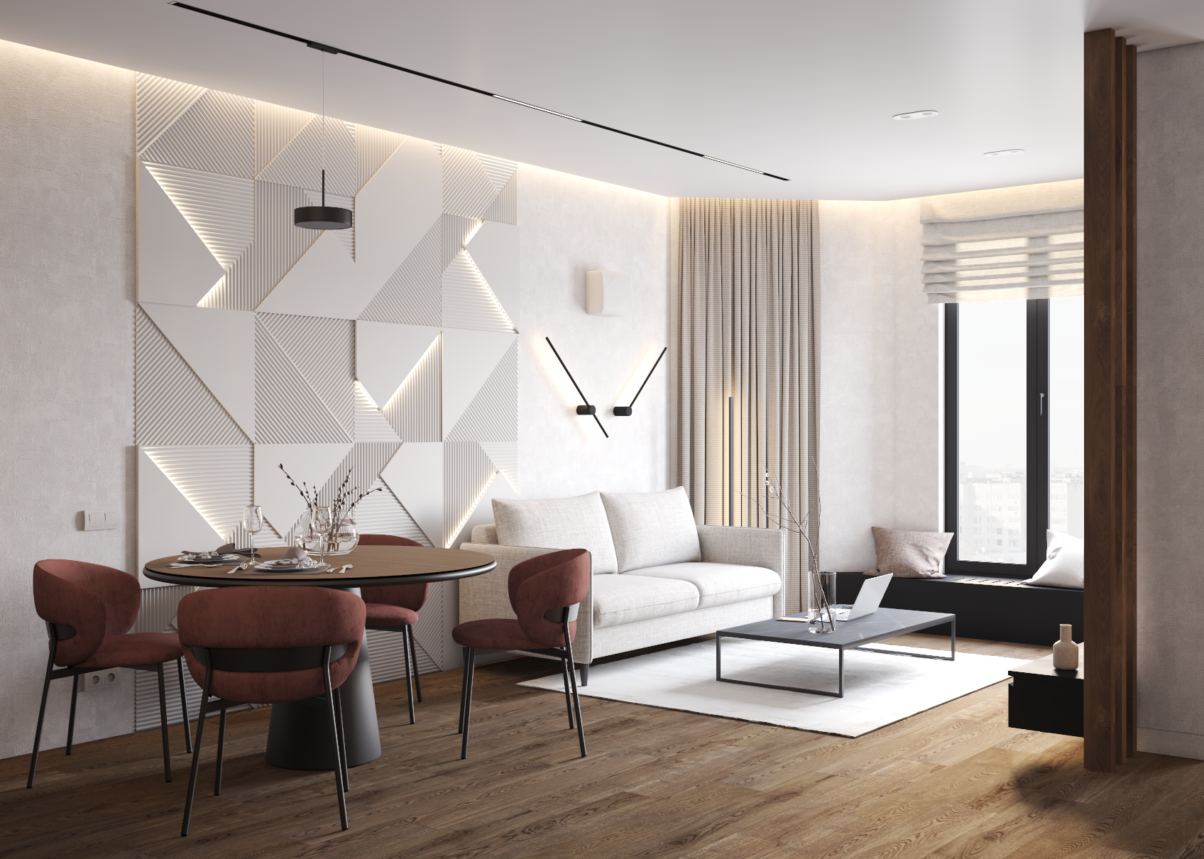 В понятие бюджет входит стоимость проекта, ремонта, материалов, мебели.
